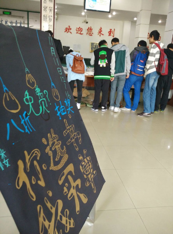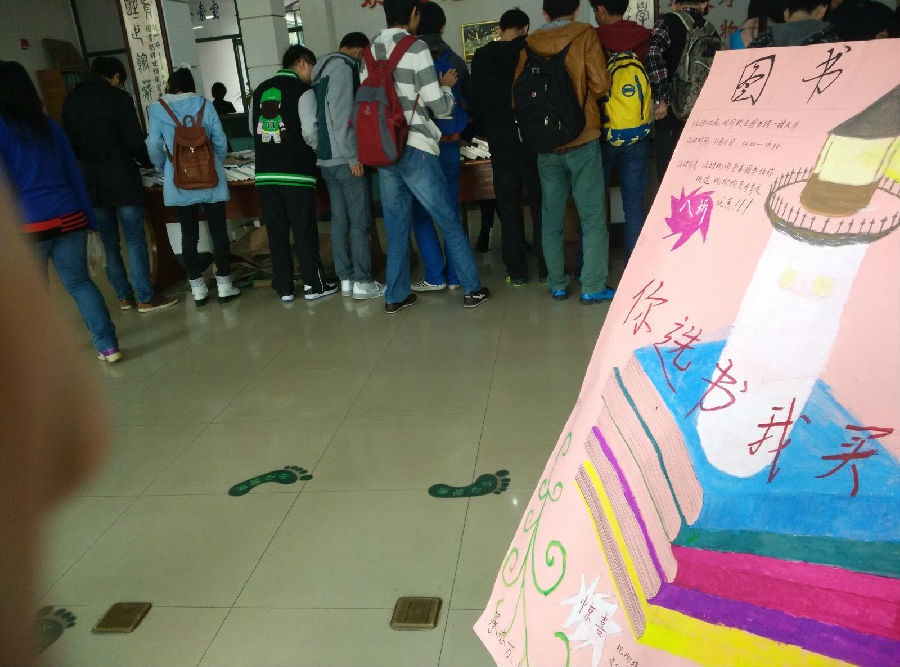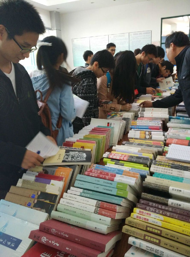 本次活动来自各个学院的老师和同学们一起参与。活动从12点一直进行到4点半,来客络绎不绝。不同学院的同学需要的书籍也有所不同,其中考研英语、计算机等公共课部分的书籍,受到大家一致追捧。之前的活动宣传工作针对全校所有同学,可见宣传工作十分成功。