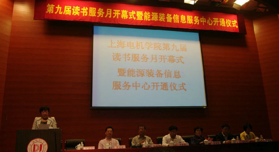 10月21日下午,上海电机学院第九届读书服务月开幕式暨能源装备信息服务中心开通仪式在临港校区图书馆报告厅举行。出席开幕式的有党委书记曹锡康、副书记宦秀芳、副校长杨若凡、财经作家杨连宁等特邀嘉宾以及相关部门负责人和学生代表共300余人。