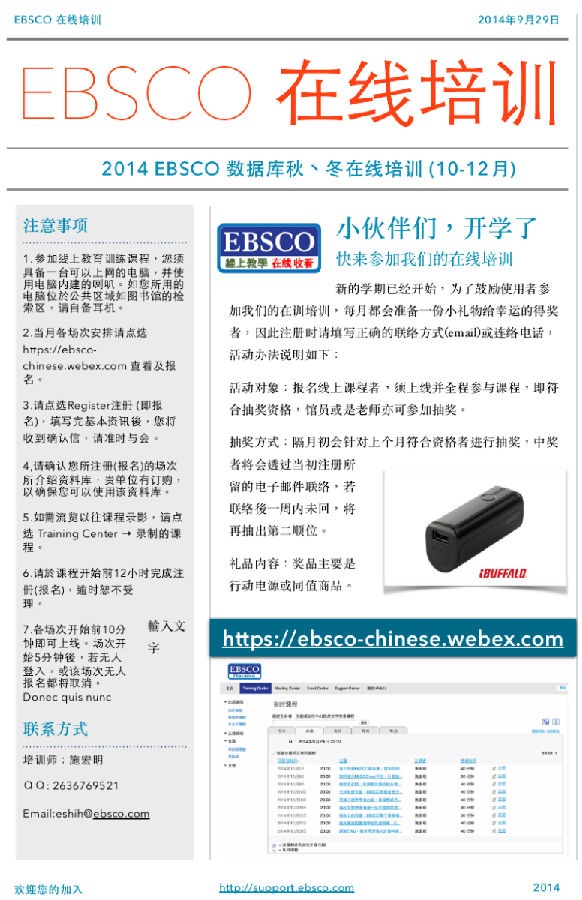 2014 EBSCO数据库秋、冬在线培训