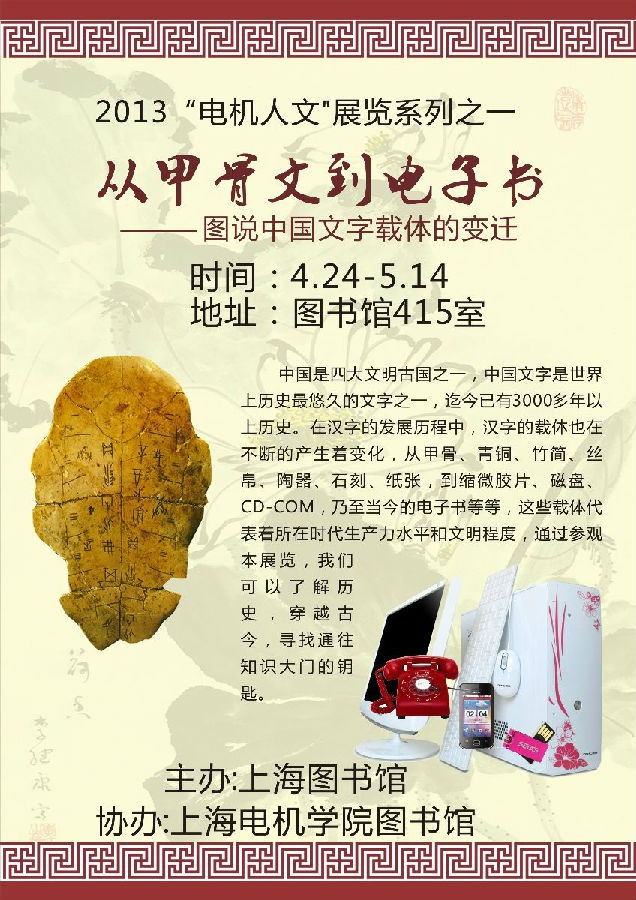 从甲骨文到电子书——图说中国文字载体的变迁展览正在我校临港图书馆举行,欢迎广大读者前来观展!