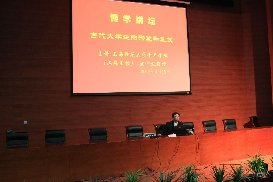 4月16日下午,我校图书馆邀请了上海师范大学青年学院(上海团校)洪守义教授作了题为“当代大学生的形象和礼仪”的讲座。
