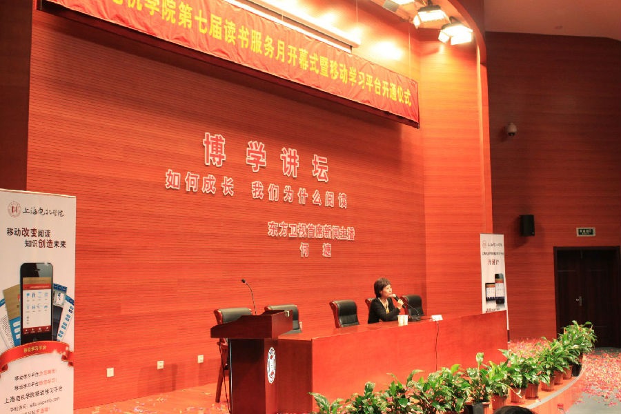 10月16日下午第七届读书服务月开幕式结束后,东方卫视首席新闻主播何婕女士应邀以《如何成长——我们为什么阅读》为主题,和师生们分享她的阅读经、成长史。