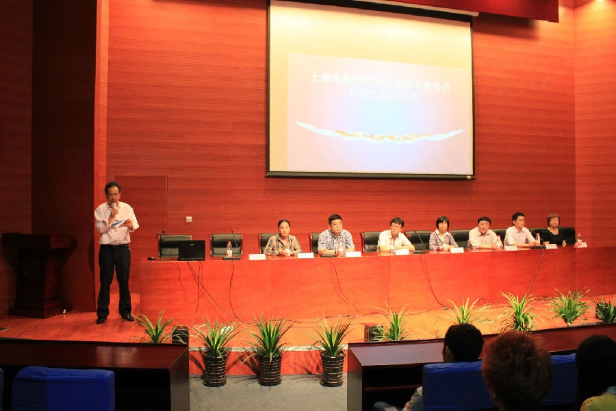 5月21日下午,以“阅读进步感恩”为主题的上海电机学院第八届读书服务月在图书馆报告厅正式拉开了帷幕。参加开幕式的特邀嘉宾为我校校友、东方禧满屋文化传播有限公司总经理、资深音乐媒体人徐冰先生,党委宣传部、学生处、团委、校庆办、教学党总支相关负责人和图书馆学生管理委员会的成员参加了开幕式。图书馆副馆长徐荣华主持,嘉宾代表徐冰、学生代表孙司琦及图书馆馆长汤学华做了发言。