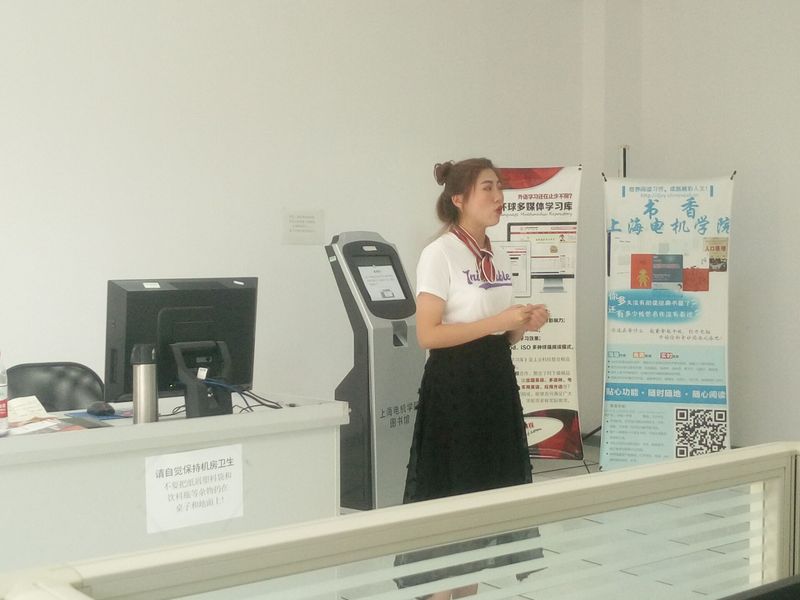 首先由上业科技培训讲师张昕妮为同学们介绍该外语数据库的内容、作用和意义,并带领同学们演示如何进入数据库、如何使用库中资源:在图书馆电子阅览室中使用电脑进入“上海电机学院图书馆”官网,找到中文资源区,点击“外语资源学习库”,即可轻松进入。同学们一起进入数据库之后,讲师为同学们介绍了平台的功能、课程体系以及演示如何进行资源检索。为了使同学们更加了解平台的资源,现场为同学们播放了数据库里的四级写作教学视频,同学们一致表示视频画质音质清晰,而且真人课堂更有利于他们学习消化。