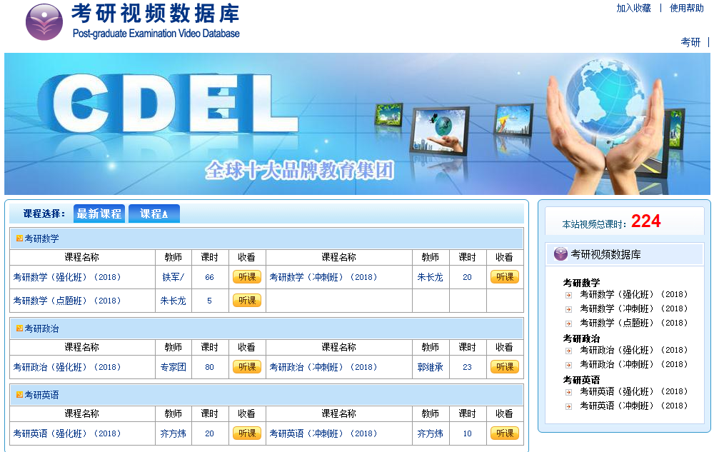 正保考研视频数据库是一个专业的考研课程视频辅导平台。所有课程均来源于正保集团旗下的考研教育网。课程主要针对研究生入学考试考前复习准备使用。包含考研英语、考研政治、考研数学课程,覆盖全年基础,强化,冲刺阶段的所有课程。