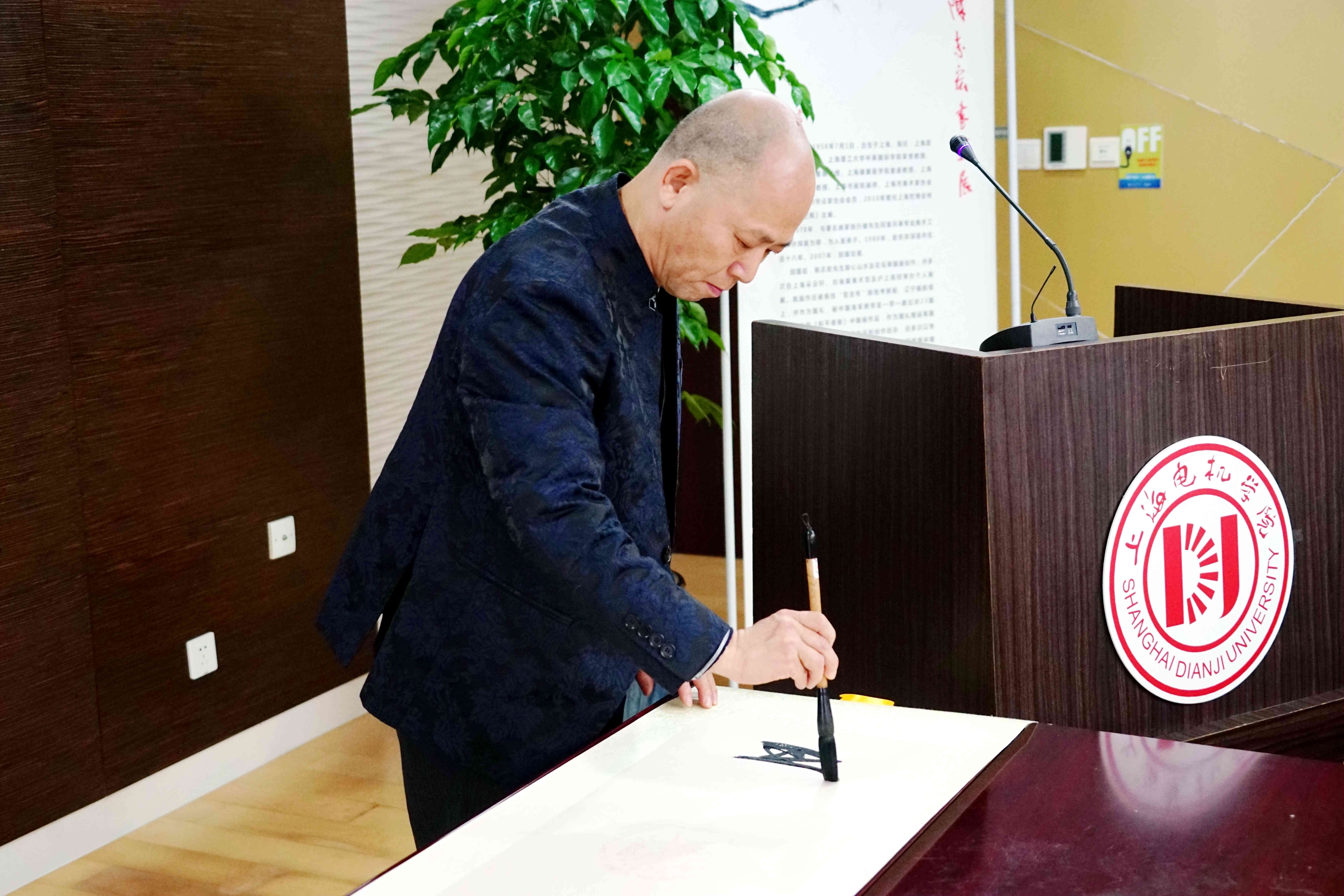 校党委副书记陈信在开幕式致辞,他首先代表学校对书画展的举办表达了祝贺,他向大家介绍了陈先生作为书画艺术家在中国传统文化传播、传承上的个人事迹与取得的成就,并对陈先生的到来表示了欢迎与感谢。长期以来,上海电机学院十分重视校园文化建设,以读书服务月为核心品牌开展各种阅读推广活动。
