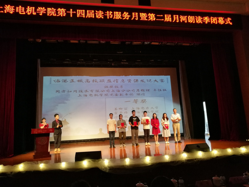 5月24日在上海电机学院第十四届读书服务月暨第二届月河朗读季闭幕式上举行了颁奖仪式,我校党委副书记、纪委书记陈信、同方知网技术有限公司上海分公司总经理卓汪权、临港五校图书馆馆长为五校获奖的同学颁奖,通过比赛进一步展示和提升了临港区域高校联盟师生的信息素养能力,进一步加强了临港区域高校联盟图书馆之间的交流合作。(周航)