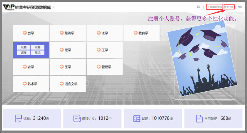 为了方便广大考生们宅在家里也能安心备考,经我校申请,维普资讯为我校考生免费提供考研全过程复习资料,包括课程讲义、学习笔记、各高校复试试卷等等。