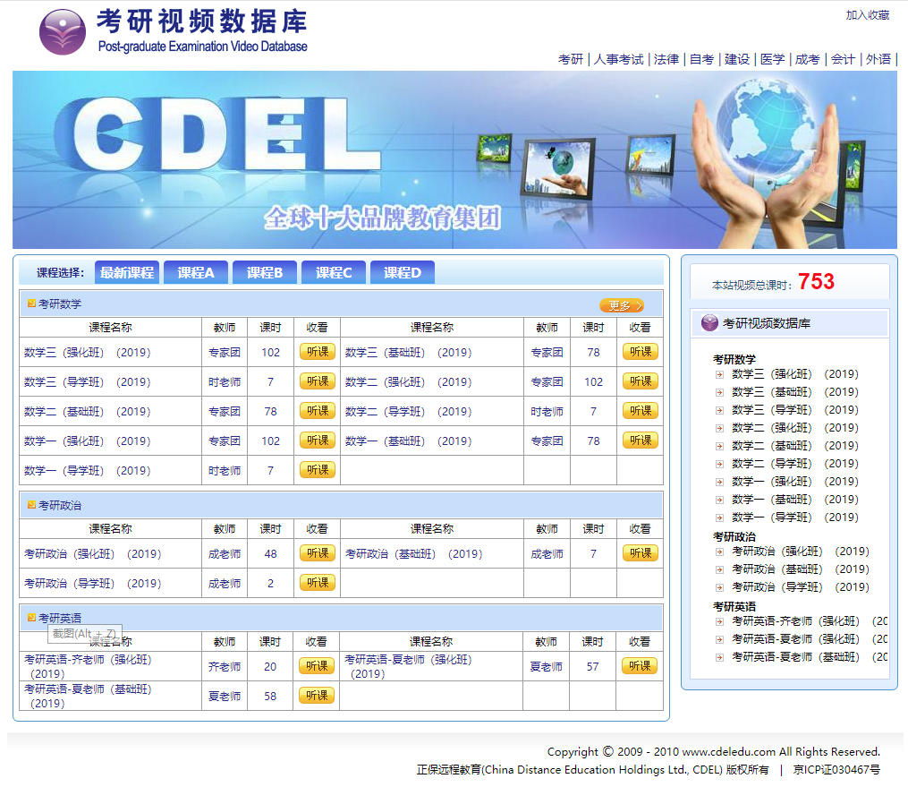 第二步:登录成功后,再访问以下这个地址:http://library.chnedu.com/CM/payment.html,则可以访问考研视频数据库的资源。