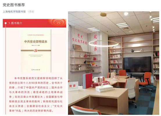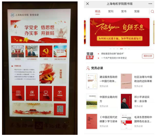图书馆肩负着校园文化建设,宣传社会主义核心价值观,传播正能量的使命。图书馆直属党支部通过党史学习资源的线上线下多屏多媒体融合,不仅打造了党史学习教育的实体空间,还打造党史学习教育“云平台”,极大拓宽了受众面,突破了阅读场地限制和纸本限制,使党史学习教育多元化,方便广大师生随时随地阅读党史,在红色文献阅读中追寻中国共产党的光辉足迹。(谢丹玫)