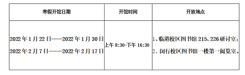 为了更好地满足您在寒假期间学习阅读的需要,我们将继续为您提供温馨的读书学习场所,现将图书馆寒假开馆的时间通知如下: