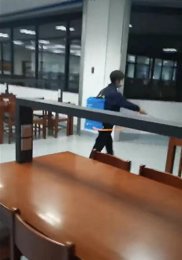 图书馆在准封闭期间的限流开放,每天不仅需要每位图书馆专班工作人员加强管理,更对环境卫生等防控措施提出了更高要求;在保持书刊、桌椅、走廊、电梯、厕所乃至地面等清洁的同时,还要在闭馆以后对所有的环境进行消杀。