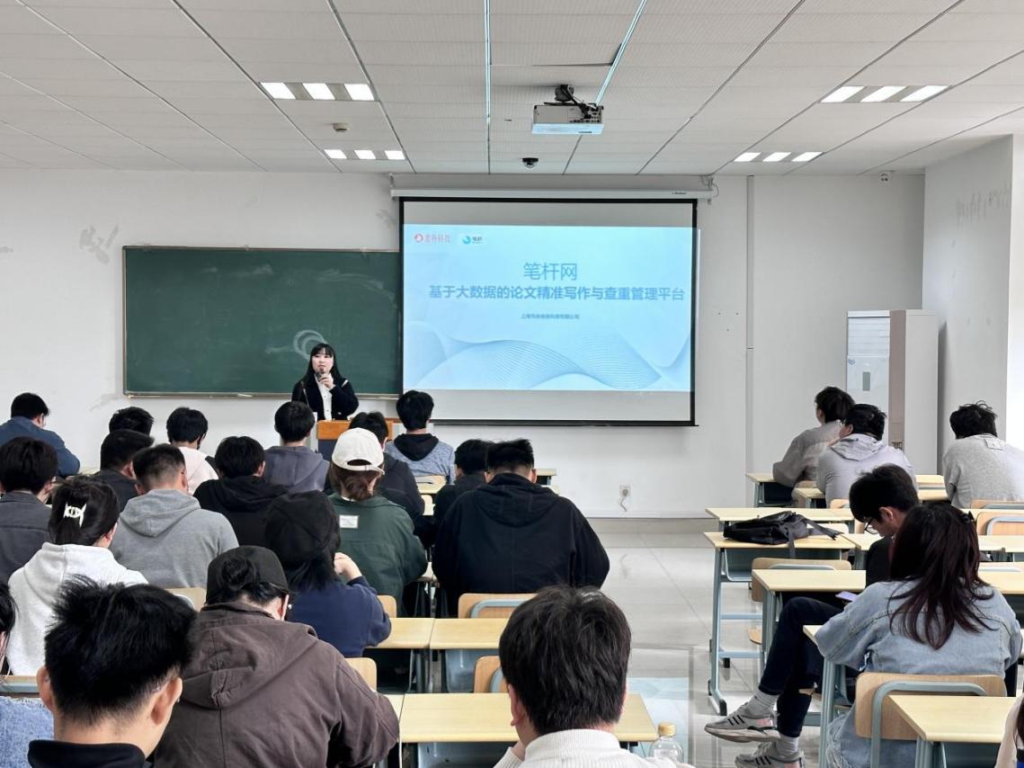 会后,图书馆直属党支部与电子信息学院党总支以问题为导向,对标调研情况,共同开展了笔杆网专题讲座。邀请了上海书舟信息科技有限公司培训讲师白莹老师在信息楼201教室进行题为《基于大数据的论文精准写作与查重管理平台》的专题讲座,电子信息学院大三、大四本科生代表和全体研究生同学踊跃参加、认真聆听,在资料收集、文献传递、论文撰写、论文查重等方面拓展了新思路,有效提高了论文写作效率、写作素养,切实为同学们解决了实际问题。(供稿:电子信息学院李笑笑)
