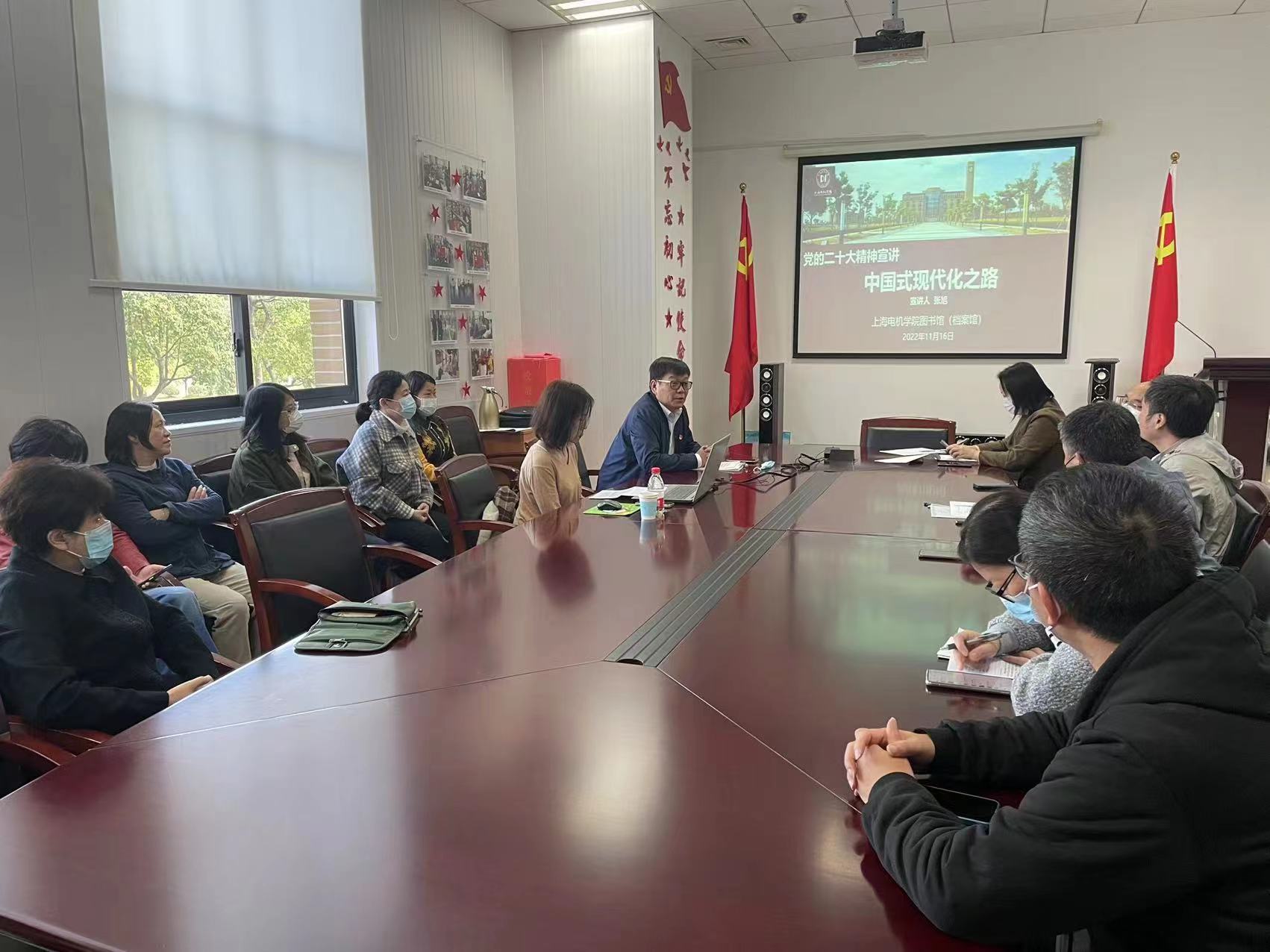 2022年11月16日,图书馆(档案馆)全体教职工以线下会议为主结合腾讯线上会议开展党的二十大报告精神宣讲的学习,特邀请马克思主义学院党的二十大精神宣讲团讲师张旭作题为《中国式现代化之路》的宣讲。