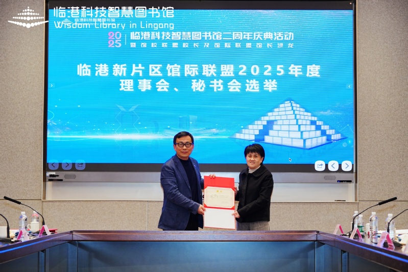 活动当日,临港新片区图书馆馆际联盟第一次馆长沙龙顺利举行。会议审议了馆际联盟章程,选举产生了2025年度理事会及秘书处成员,并就全年活动计划及重点合作事项展开深入交流与探讨。经选举,张慧文全票当选馆际联盟理事会理事长。她当选后表示,理事会将切实肩负起责任与担当,全方位、深层次地推动馆际联盟合作,促进各成员馆事业迈向新高度,为服务临港地区发展贡献图书馆的力量。