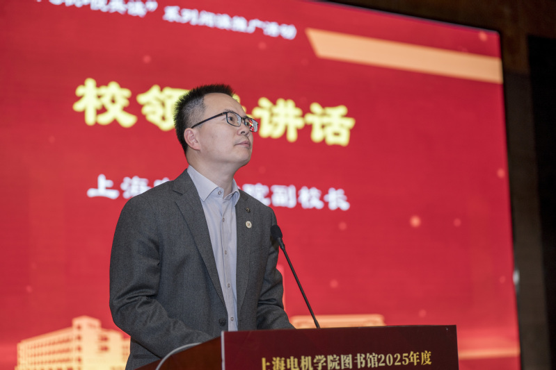 上海电机学院副院长杨俊杰致开幕辞。他指出,本次阅读推广活动既是深入贯彻落实党的二十大精神和习近平总书记重要指示精神的有力举措,也是全力打造“书香电机”更好推动校园文化阅读品牌建设的一项重要活动。回首70多年办学历程,学校因产而生、随产而进、融产而强,始终与产业发展同频共振,而阅读正是我们涵养精神、启迪未来的力量源泉。希望大家以阅读推广活动为契机,共筑书香校园,共赴智慧未来。