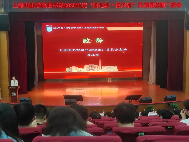 在第30个世界读书日到来之际,以“阅读启迪未来•书香润月河”为主题的上海电机学院2025年度“阅电机•悦共读”系列阅读推广活动开幕式在临港校区小剧场隆重举行!上海图书馆学会、部分上海高校图书馆、临港科技智慧图书馆领导,上海电机学院领导、相关职能部门负责人以及二级学院的部分师生共同见证了本年度阅读推广活动的启幕。开幕式由上海电机学院图书馆馆长张慧文主持。