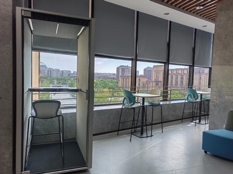 试运行期间,读者可通过一卡通或二维码等方式便捷入馆,图书借阅、学习。图书馆打造了笃行•星河、笃行•问天、笃行•北斗、明德·翰林、明德·辩章、至善·拓扑、至善·创芯、博学·求索、博学·思贤等25间特色各异的研讨室,正式开馆后全部可预约使用。新馆引入定制化的AI馆员上海电机学院“智书童”,支持语音与文字双模式交互,将成为智慧图书馆时代的服务新窗口。还配备静音仓,步入其中接打电话、专心背诵或视频会议,即刻取消“静音模式”。